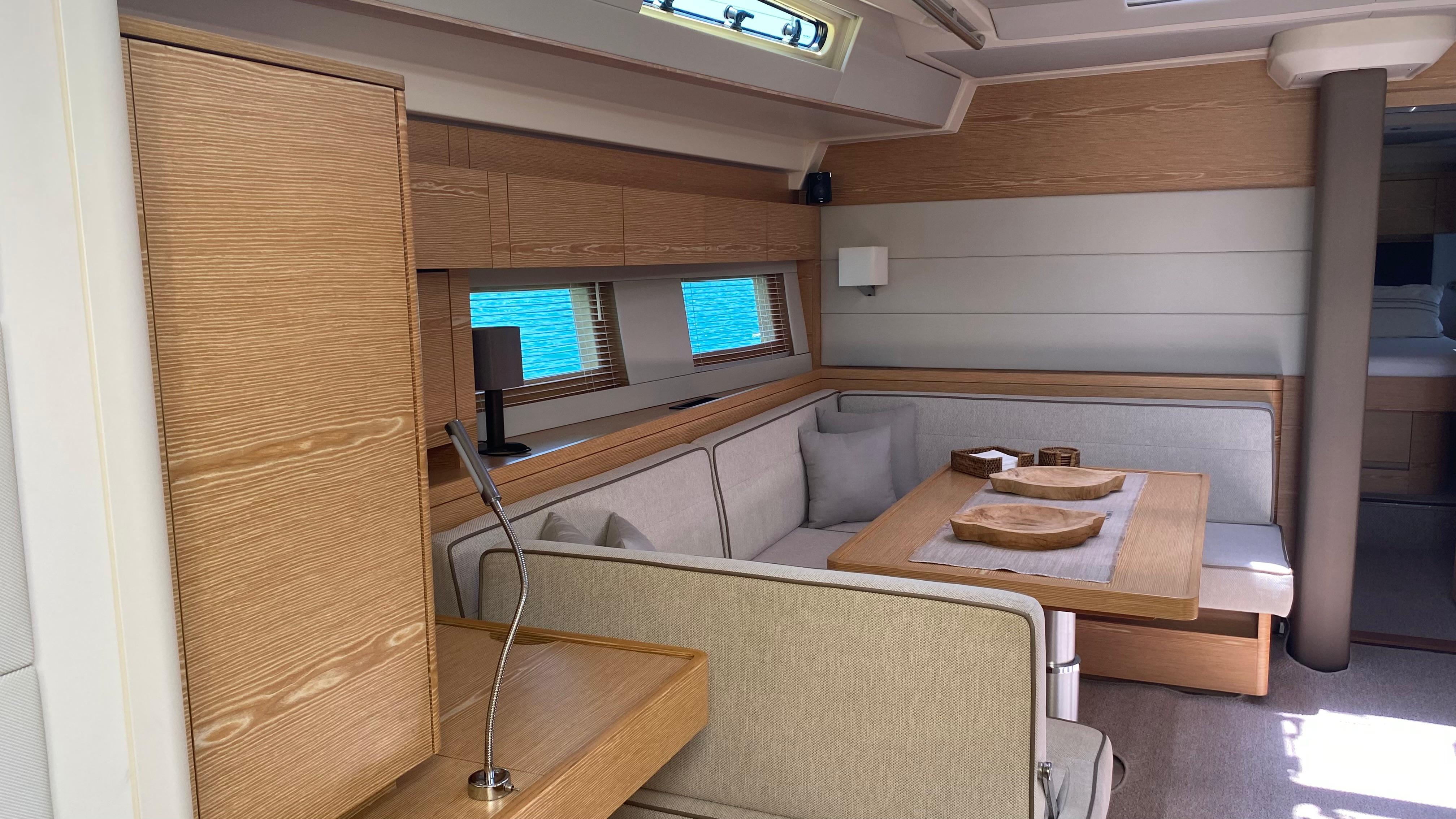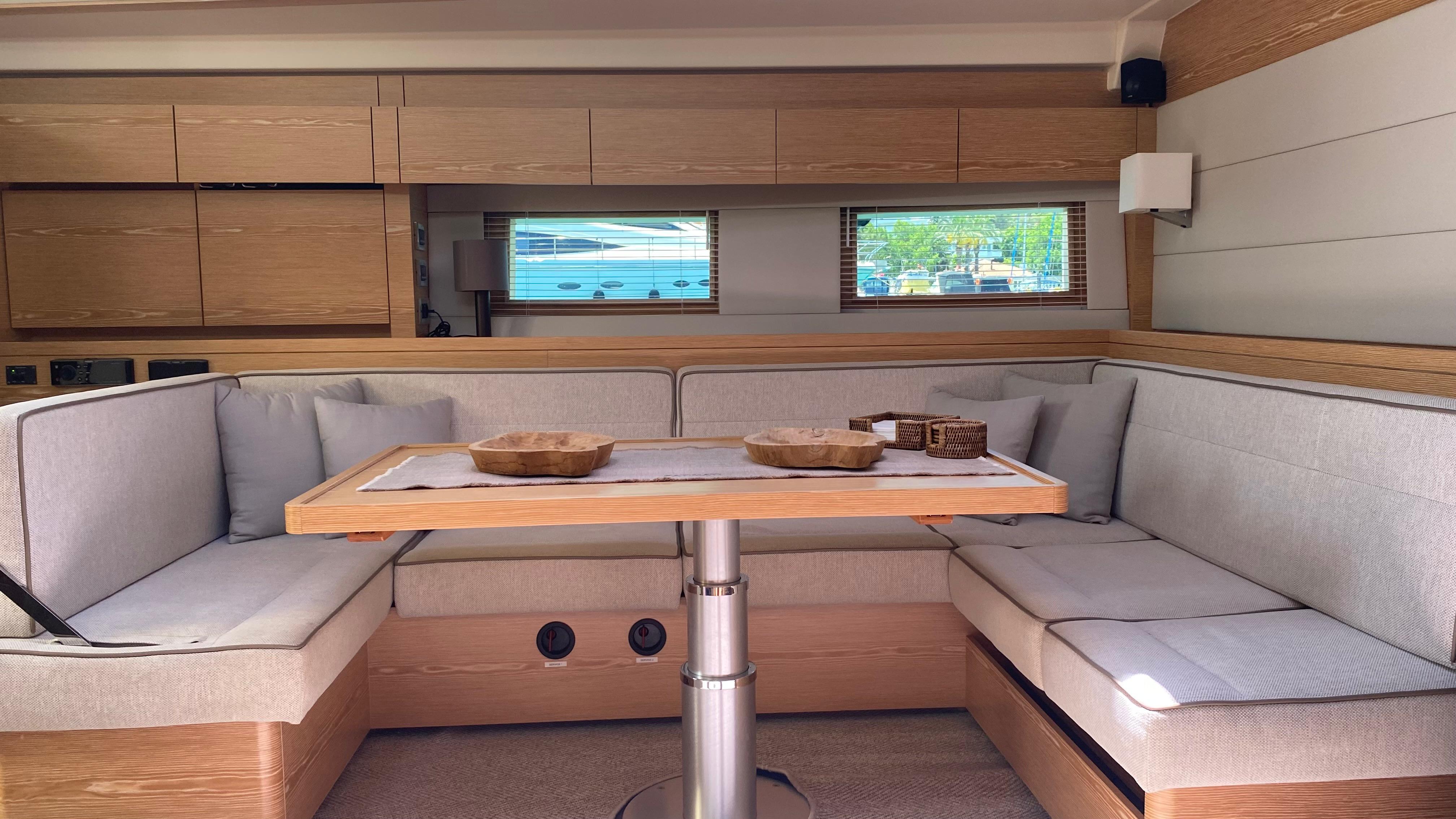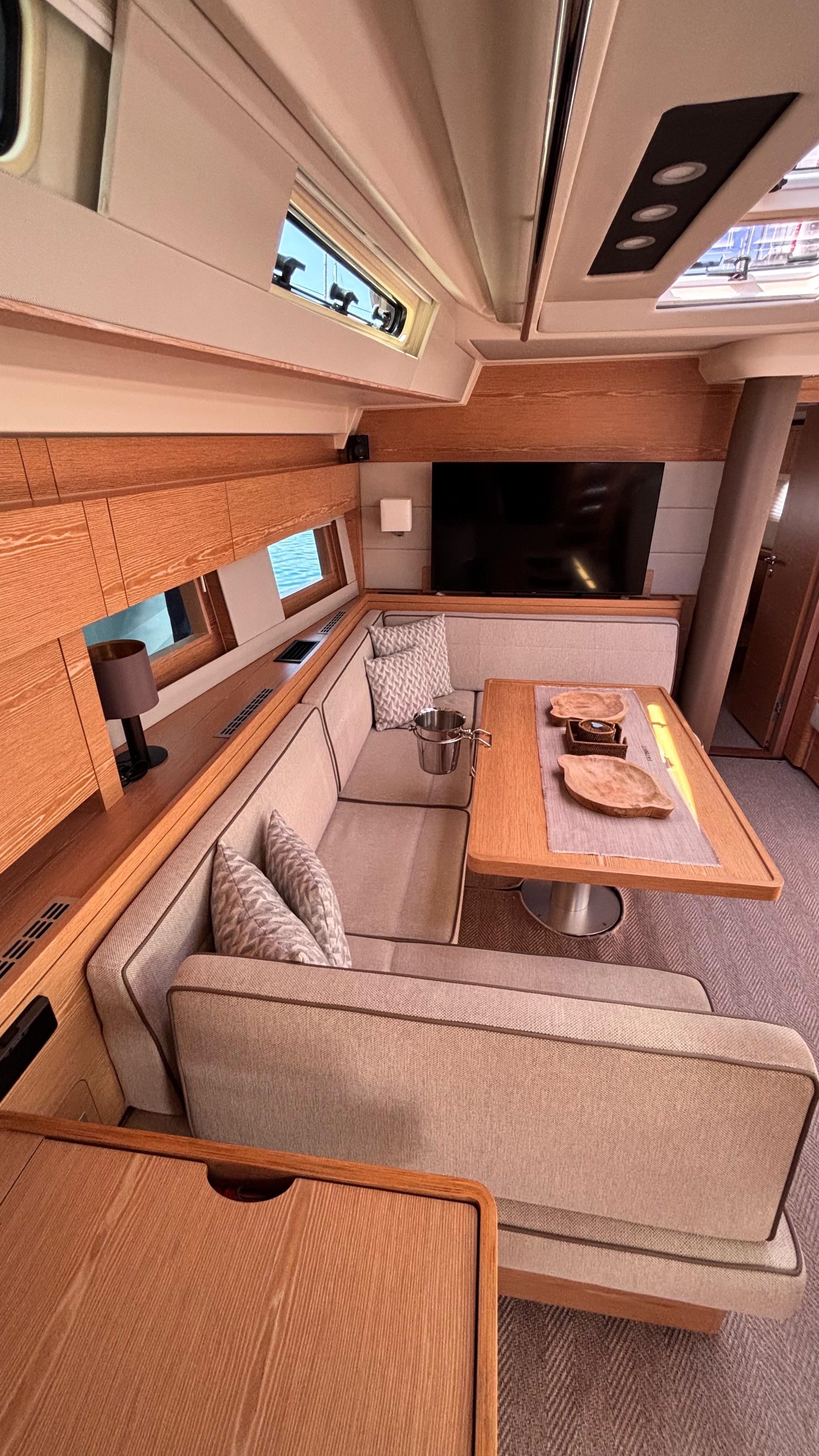 - Saloon seating to port side around dining table