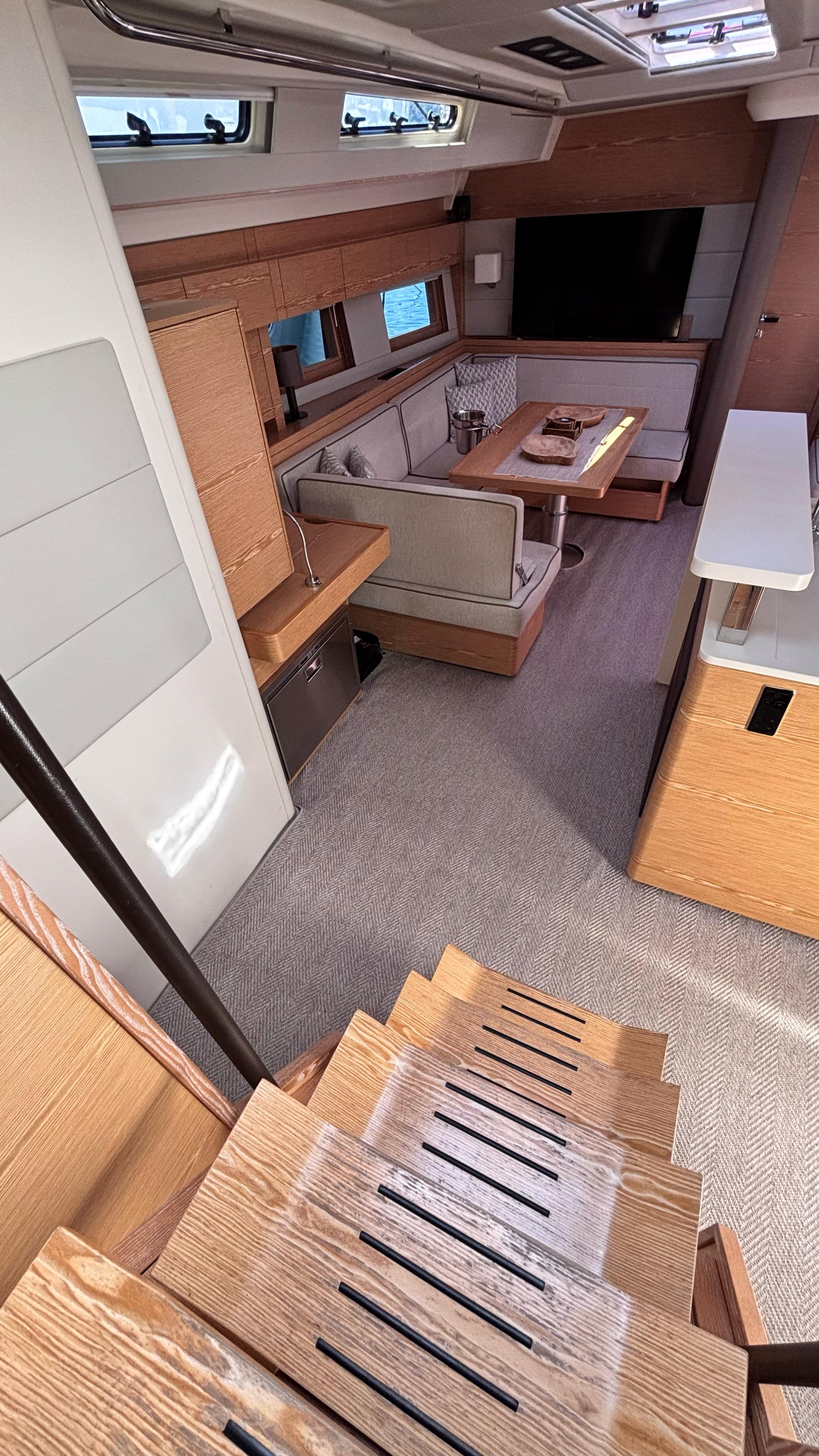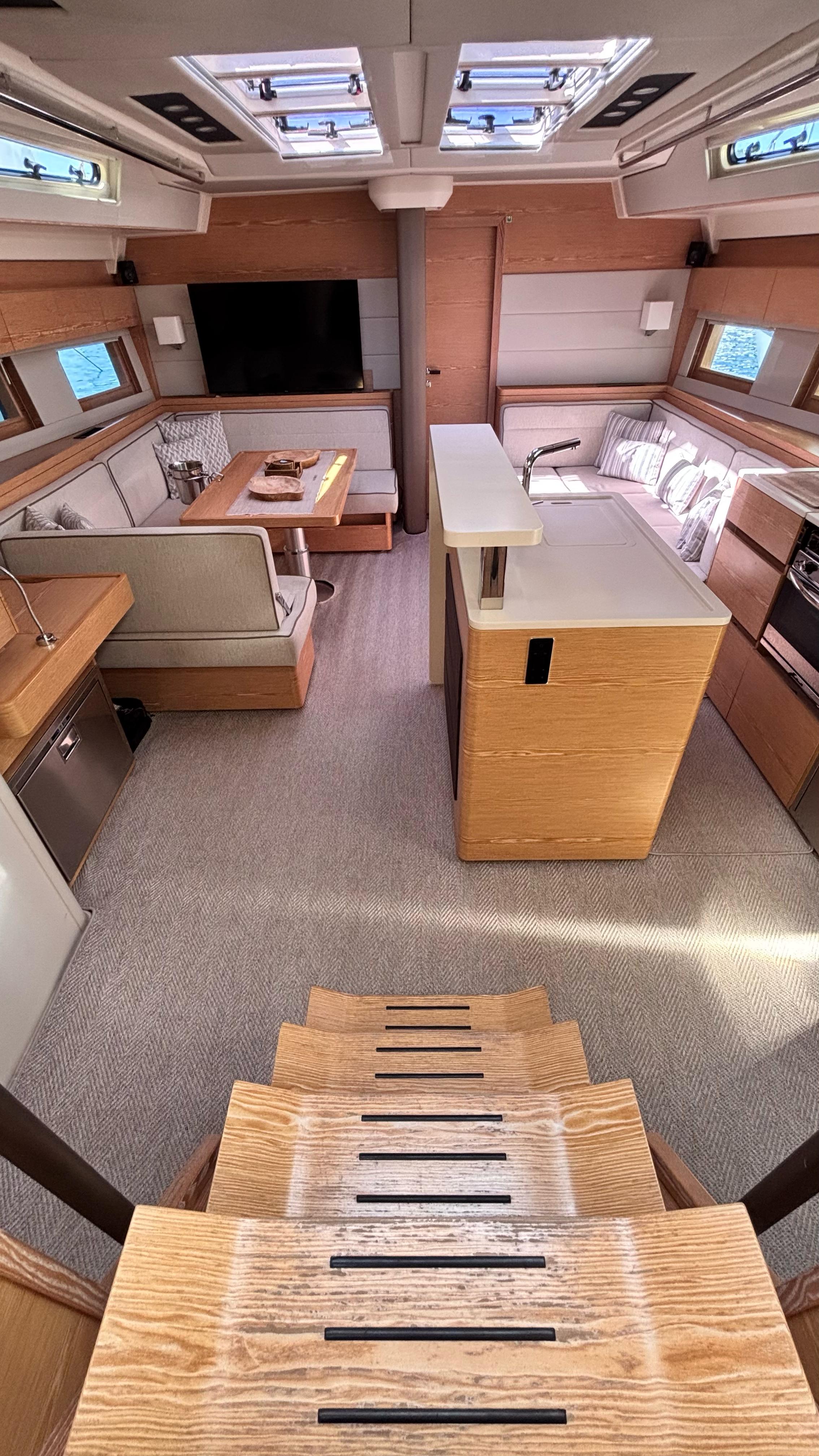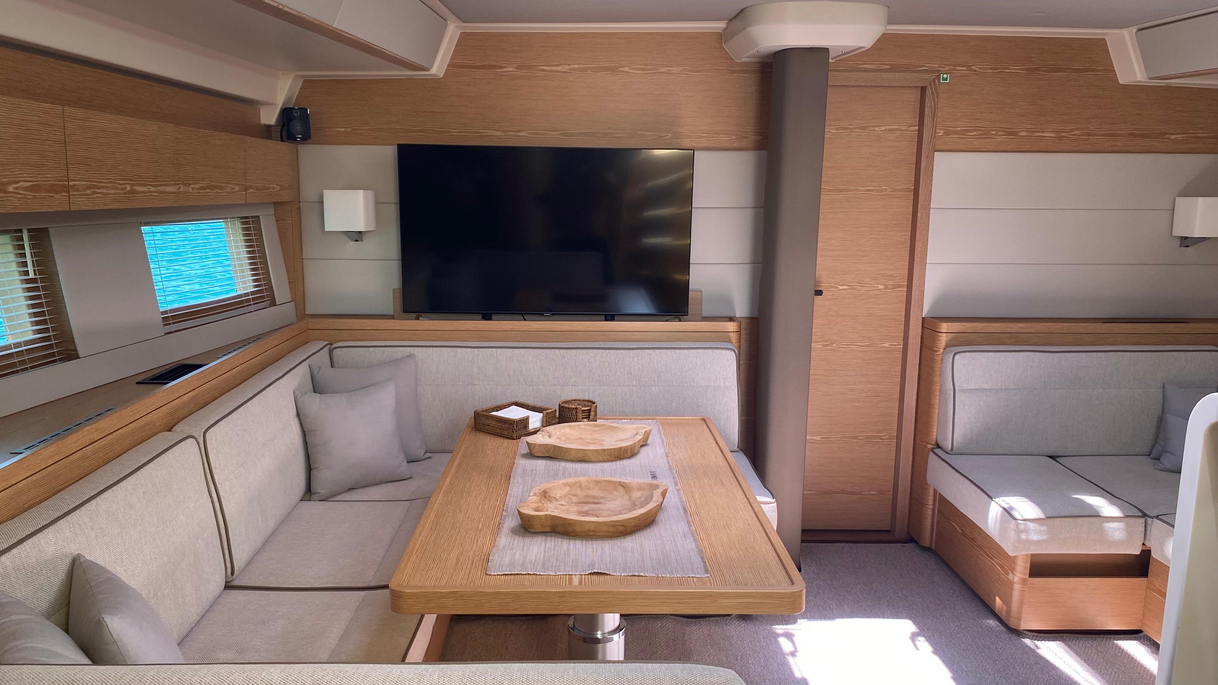 - Saloon seating to port side around dining table