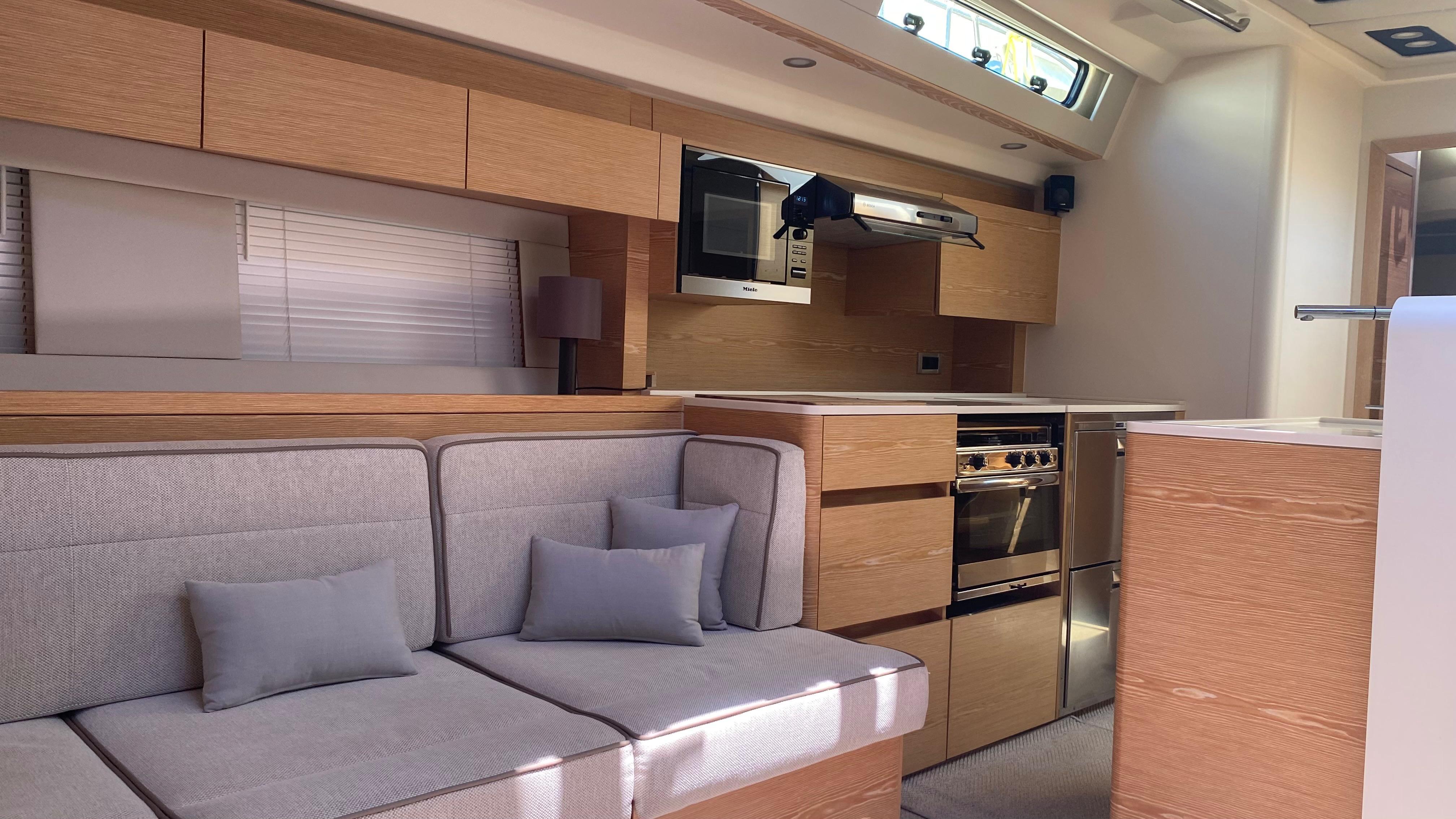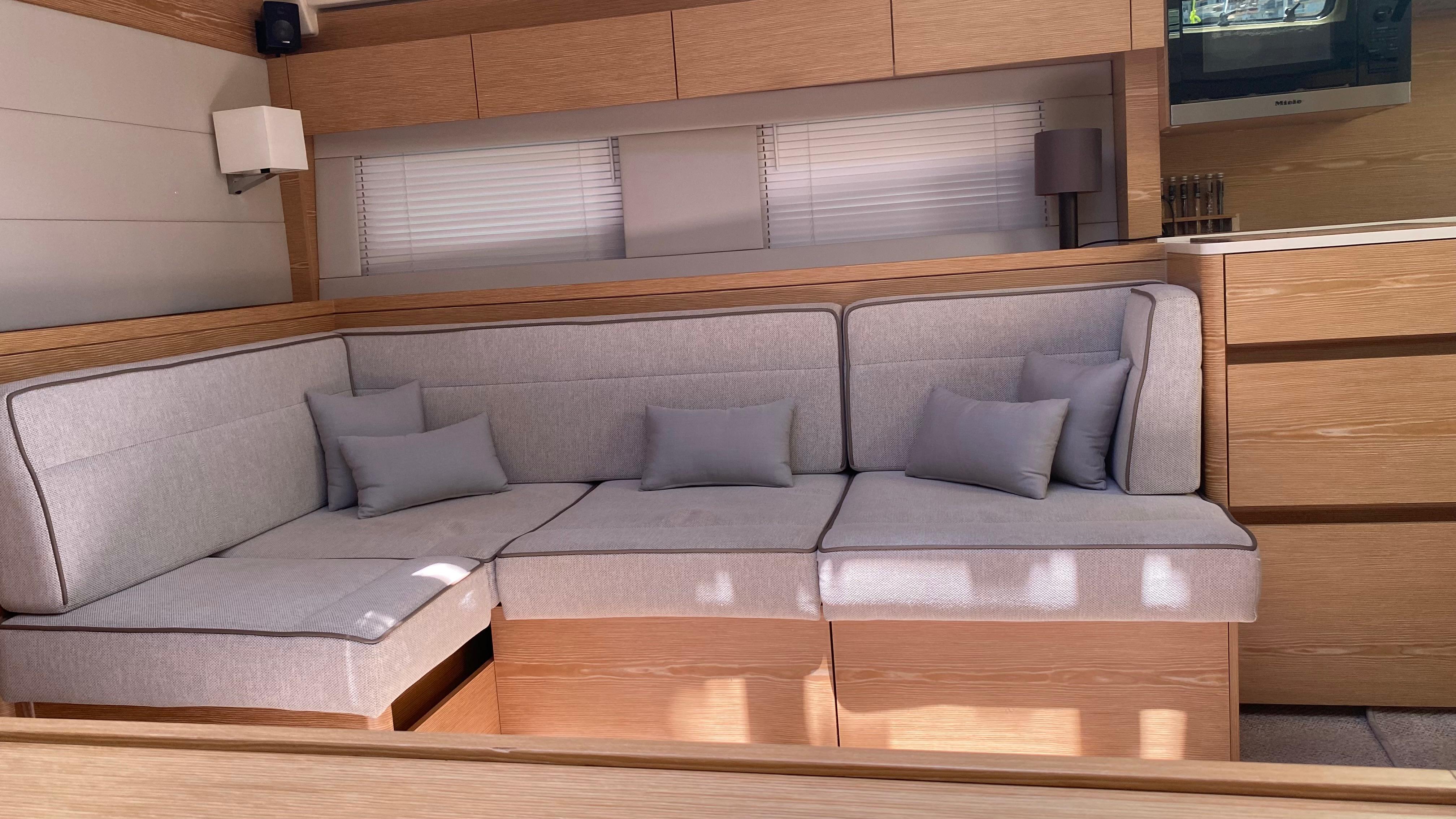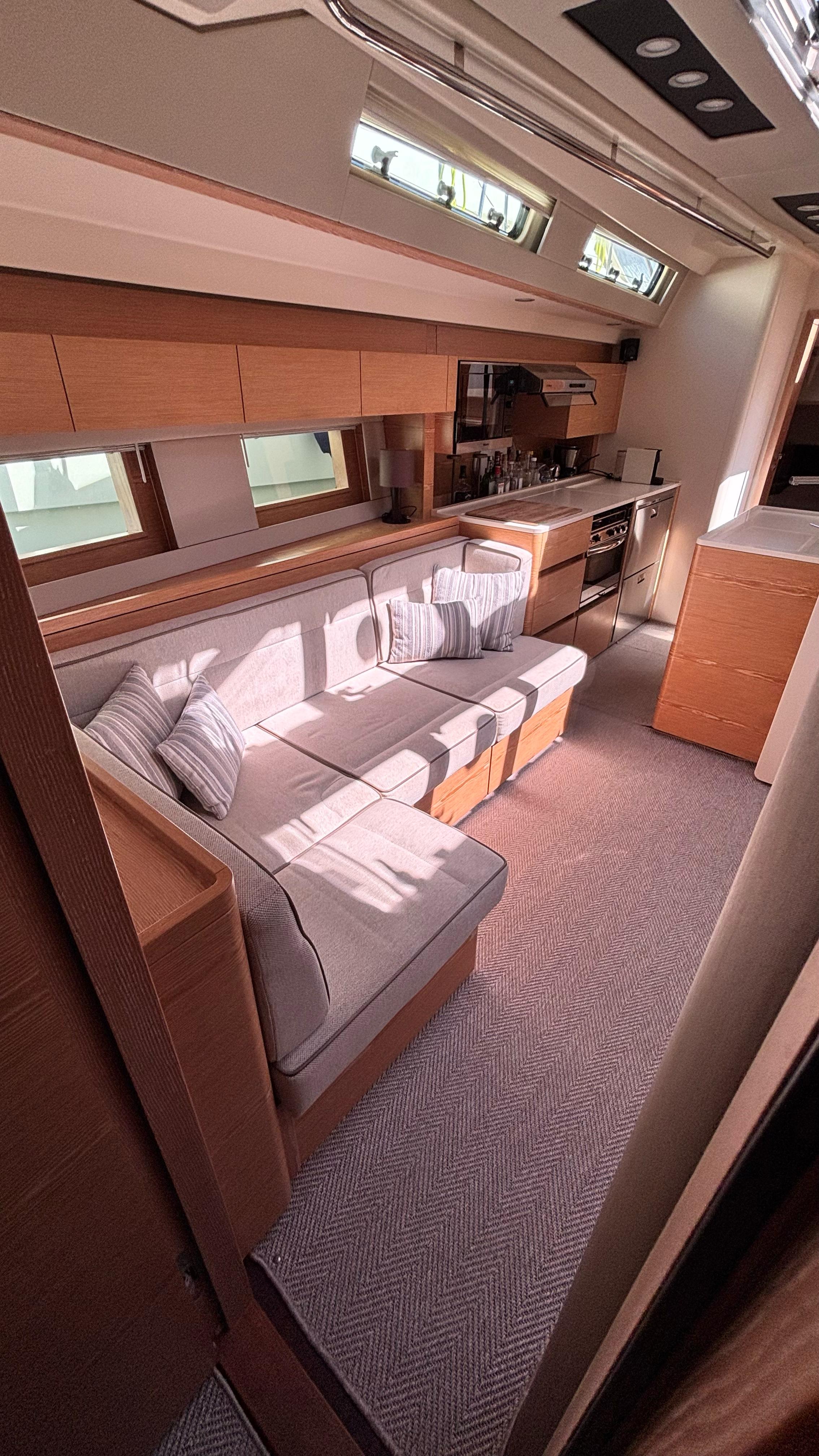 - Sofa seating on starboard side