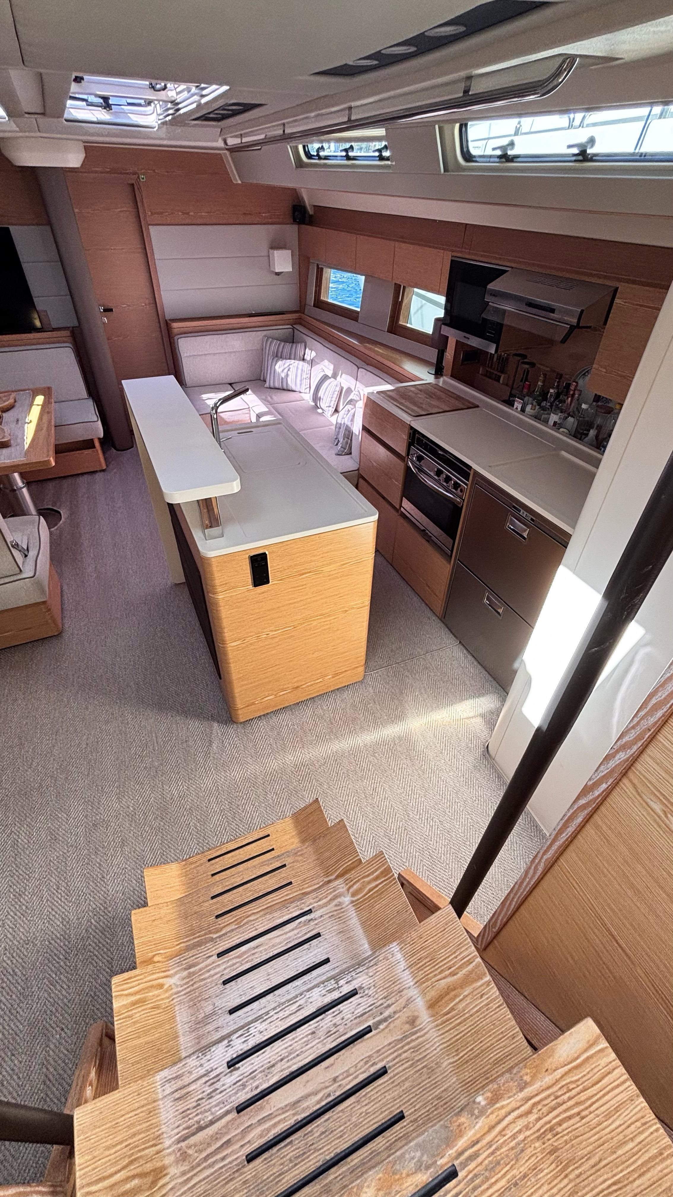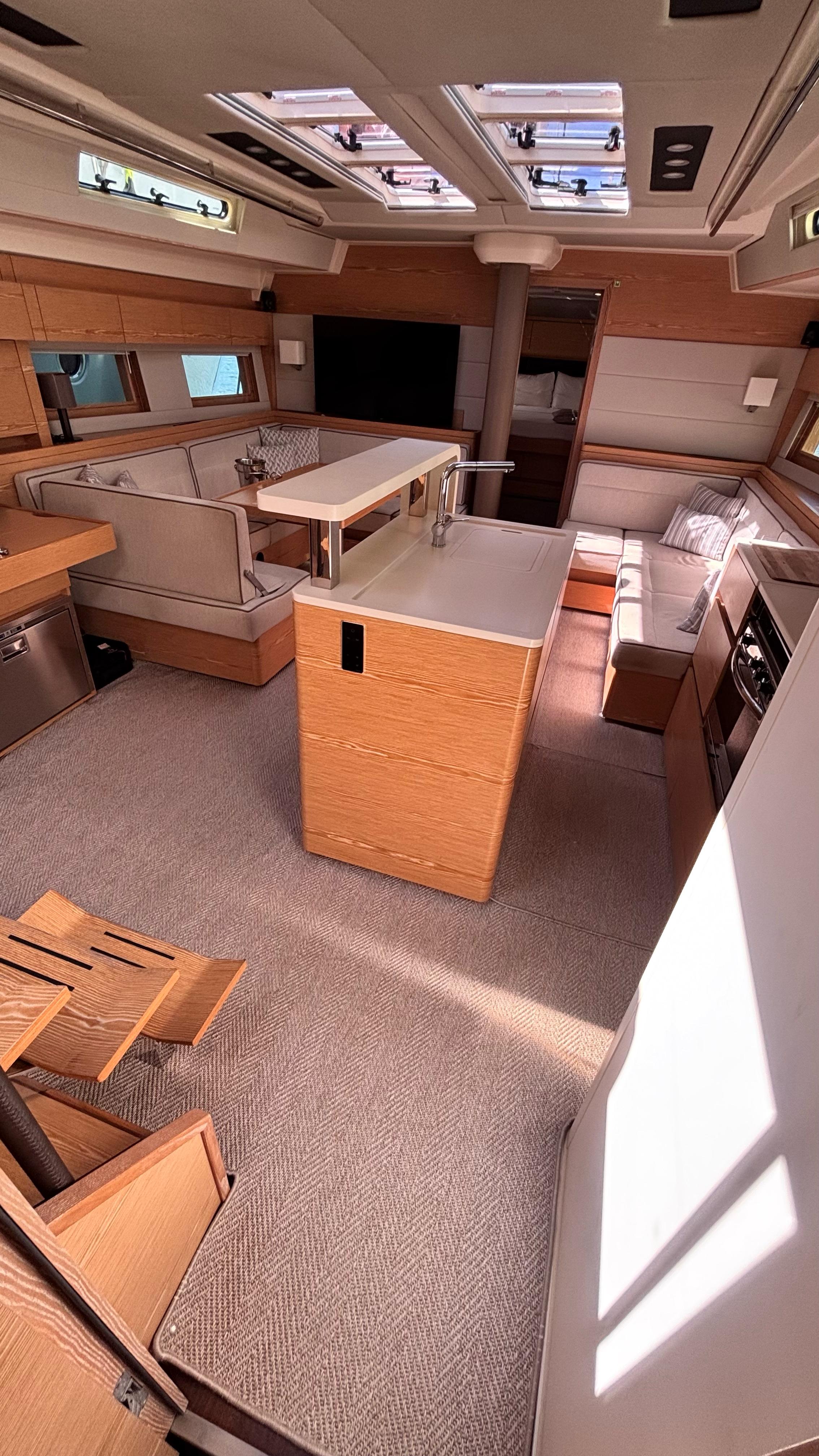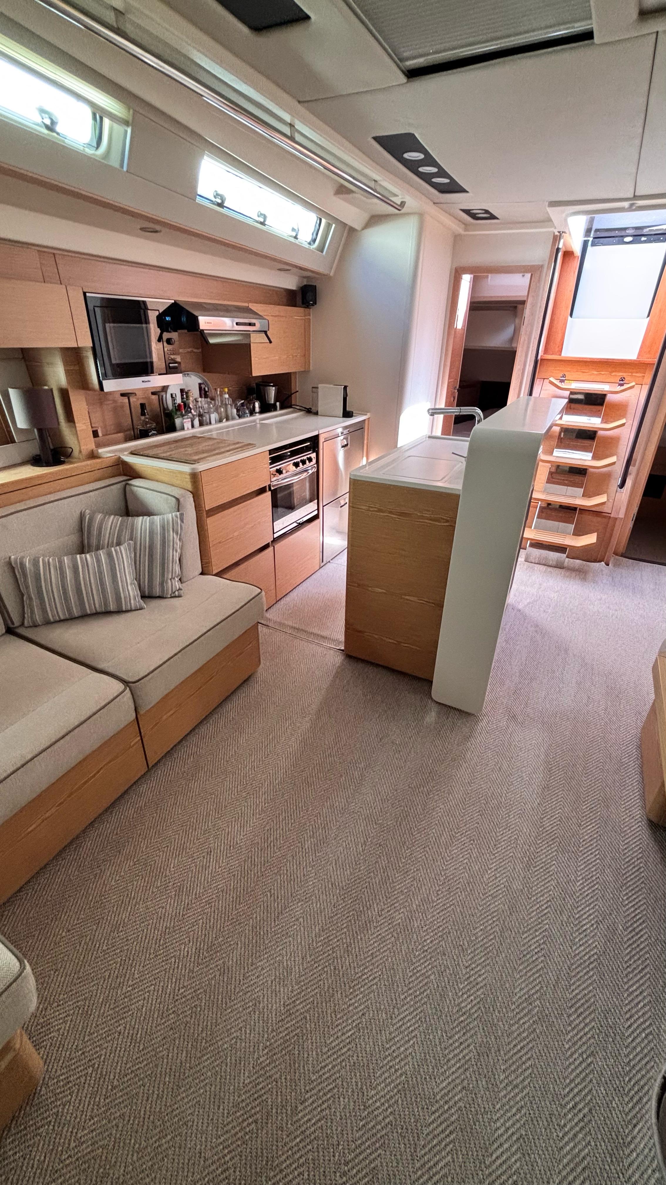 - Sofa seating on starboard side