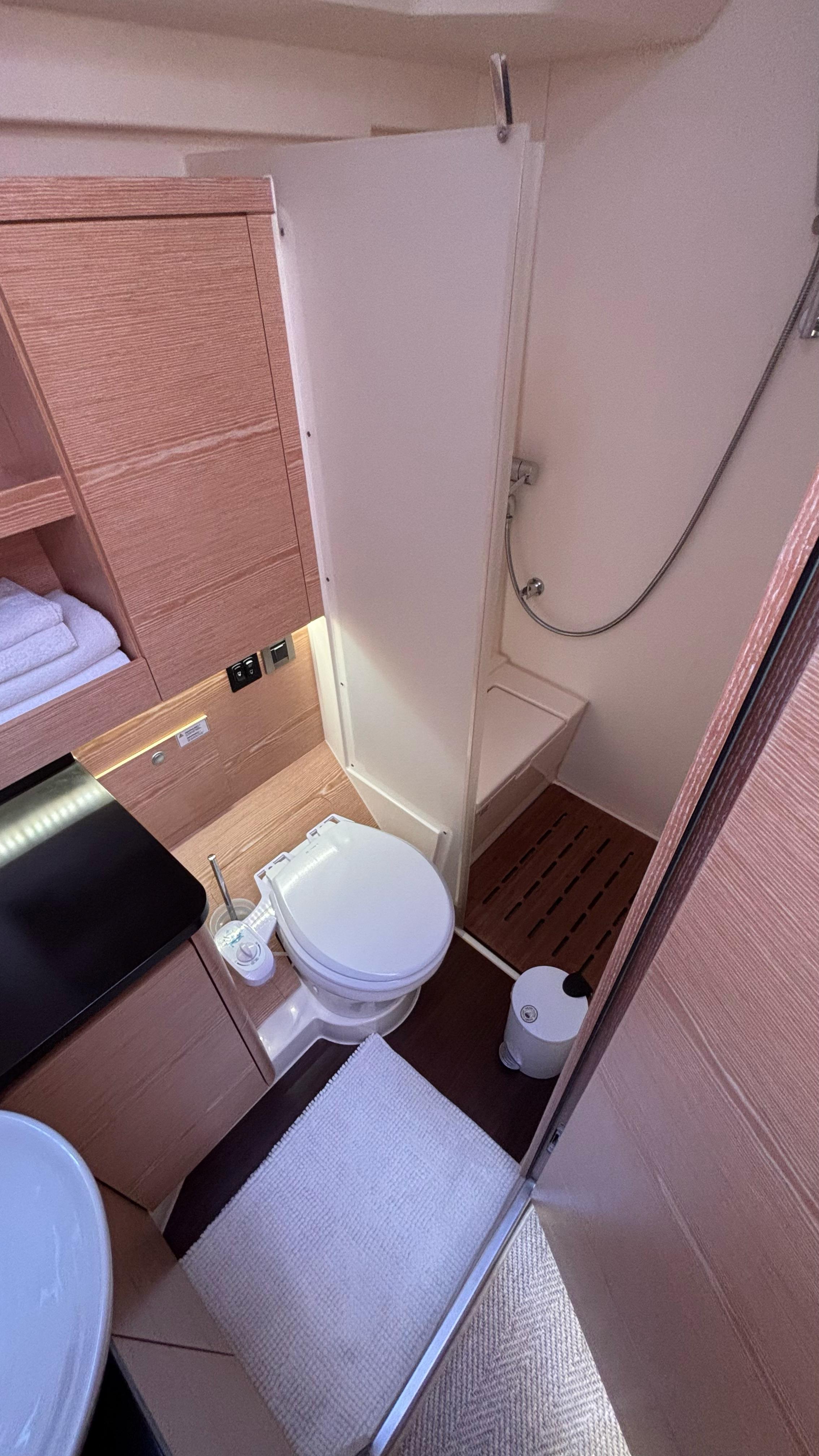 - Dedicated shower cubicle on starboard side