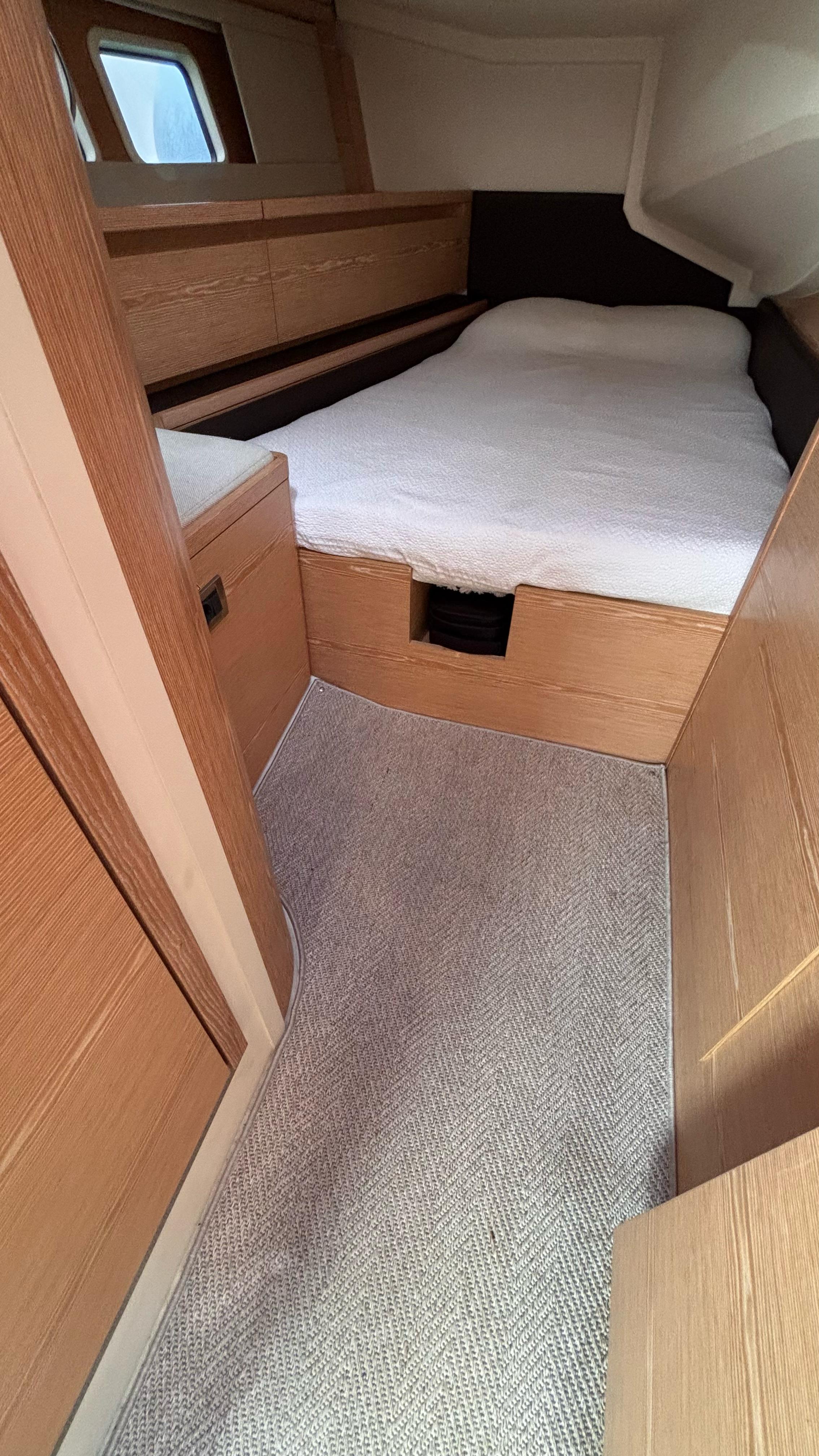 - Separate shower cubicle (by screen) on port side with upgraded teak floor gratings